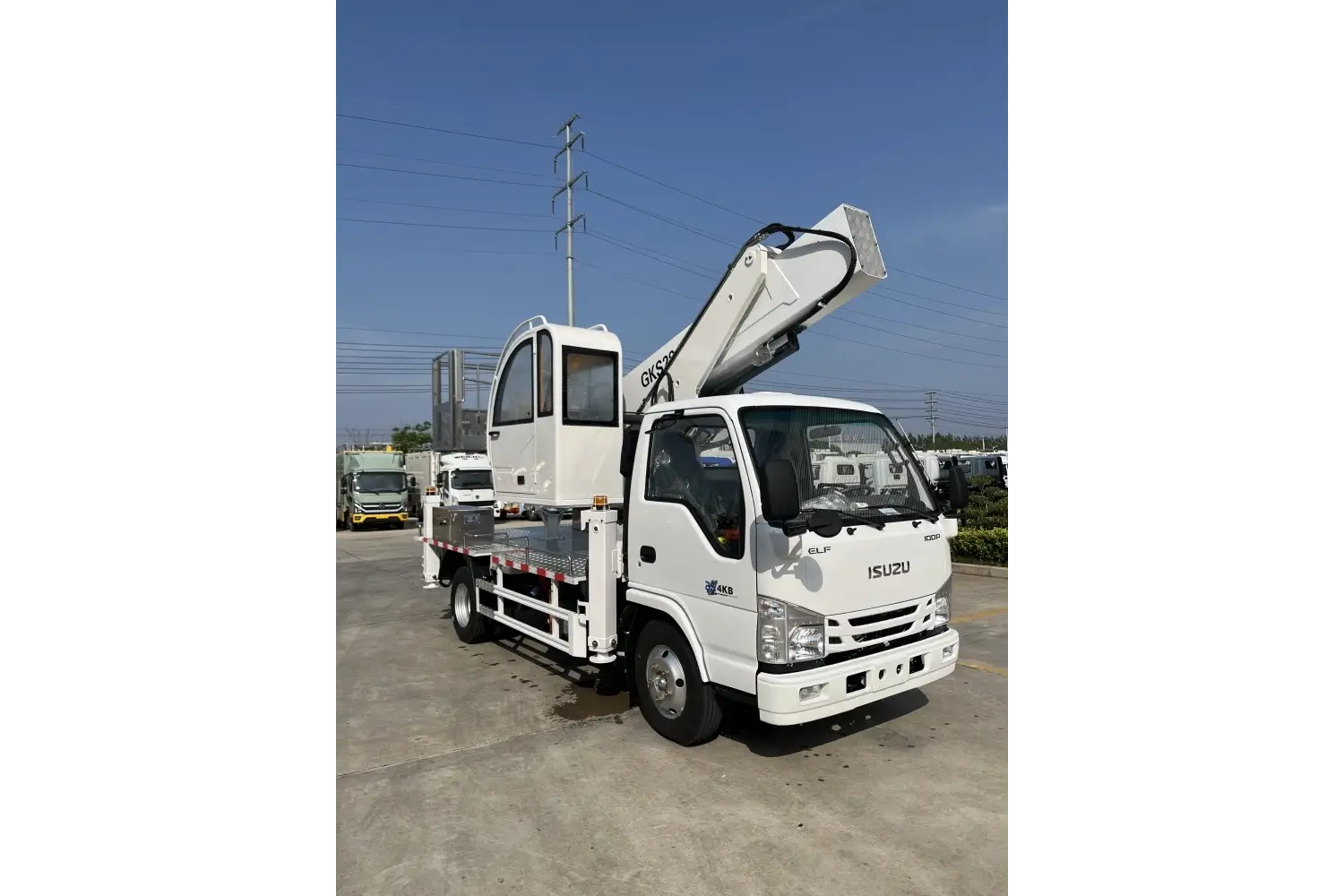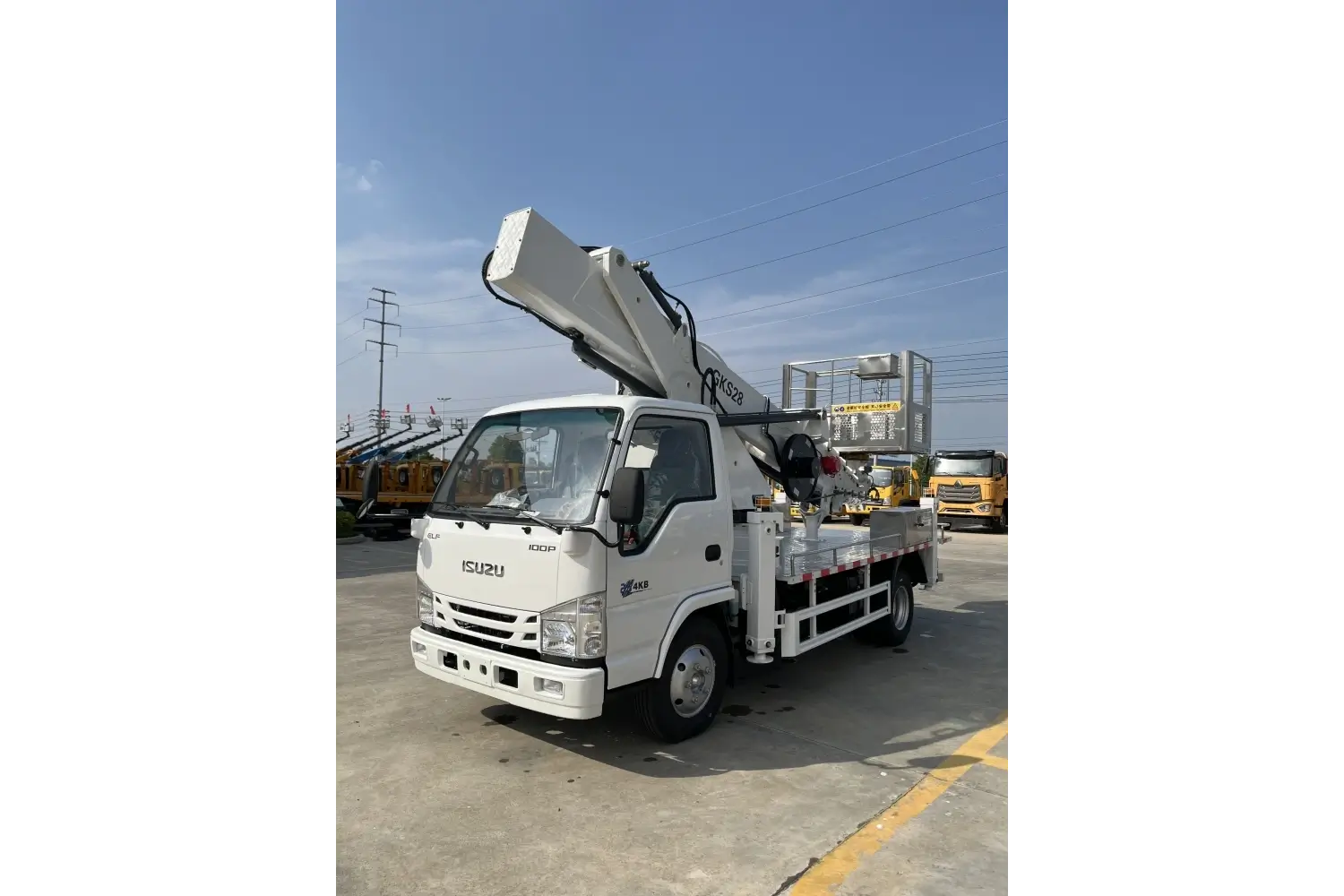 | Engine: Isuzu: One white aerial work platform truck meeting China VI emission standards, equipped with ABS, power steering, air conditioning, 130hp Isuzu engine, 3360mm wheelbase, power windows and doors, and air brakes. | ||||