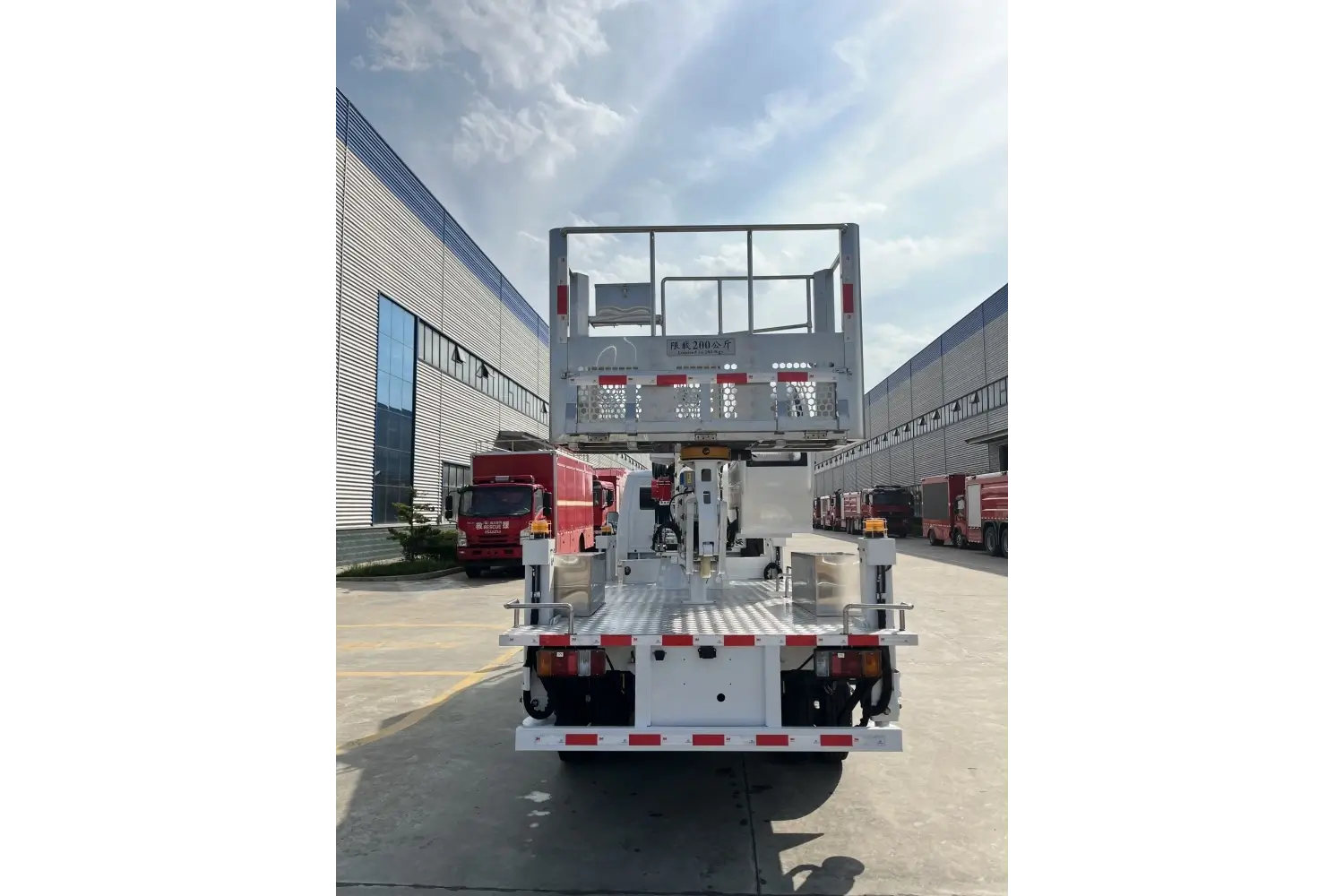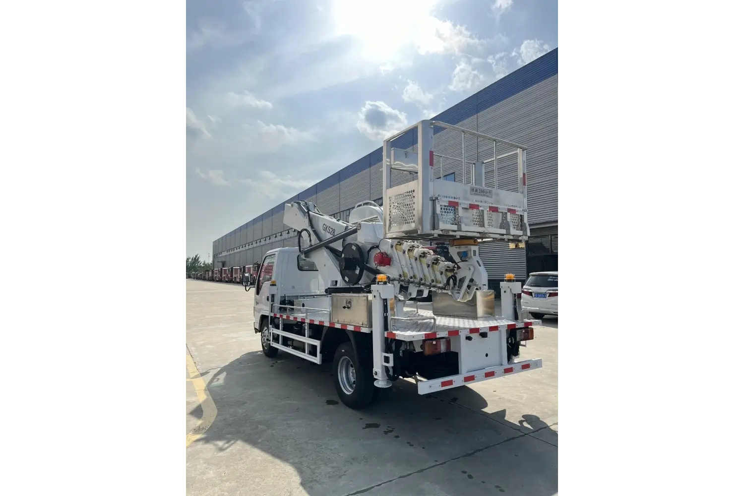 | Basic safety features of the aerial work platform vehicle: The vehicle can achieve a platform load of 250KG , a maximum working height of 28 meters, and a maximum working radius of 15 meters to the left and right . | |